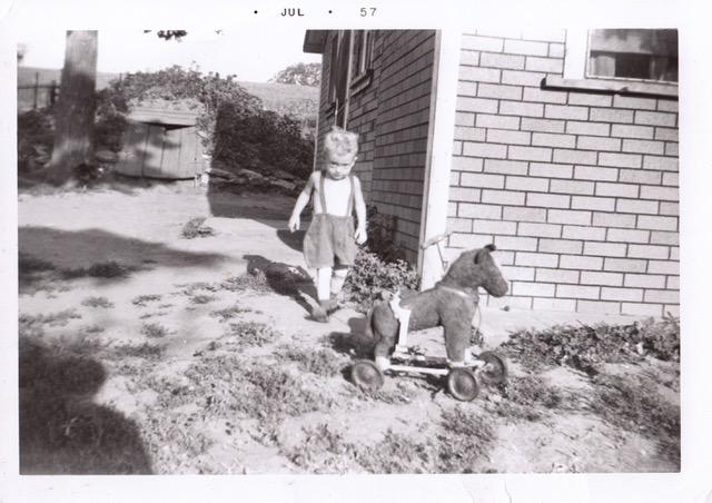 I begin with a photo of my 2 year-old self, coming out the back door, ready to mount my trusty steed for another day of adventure.
